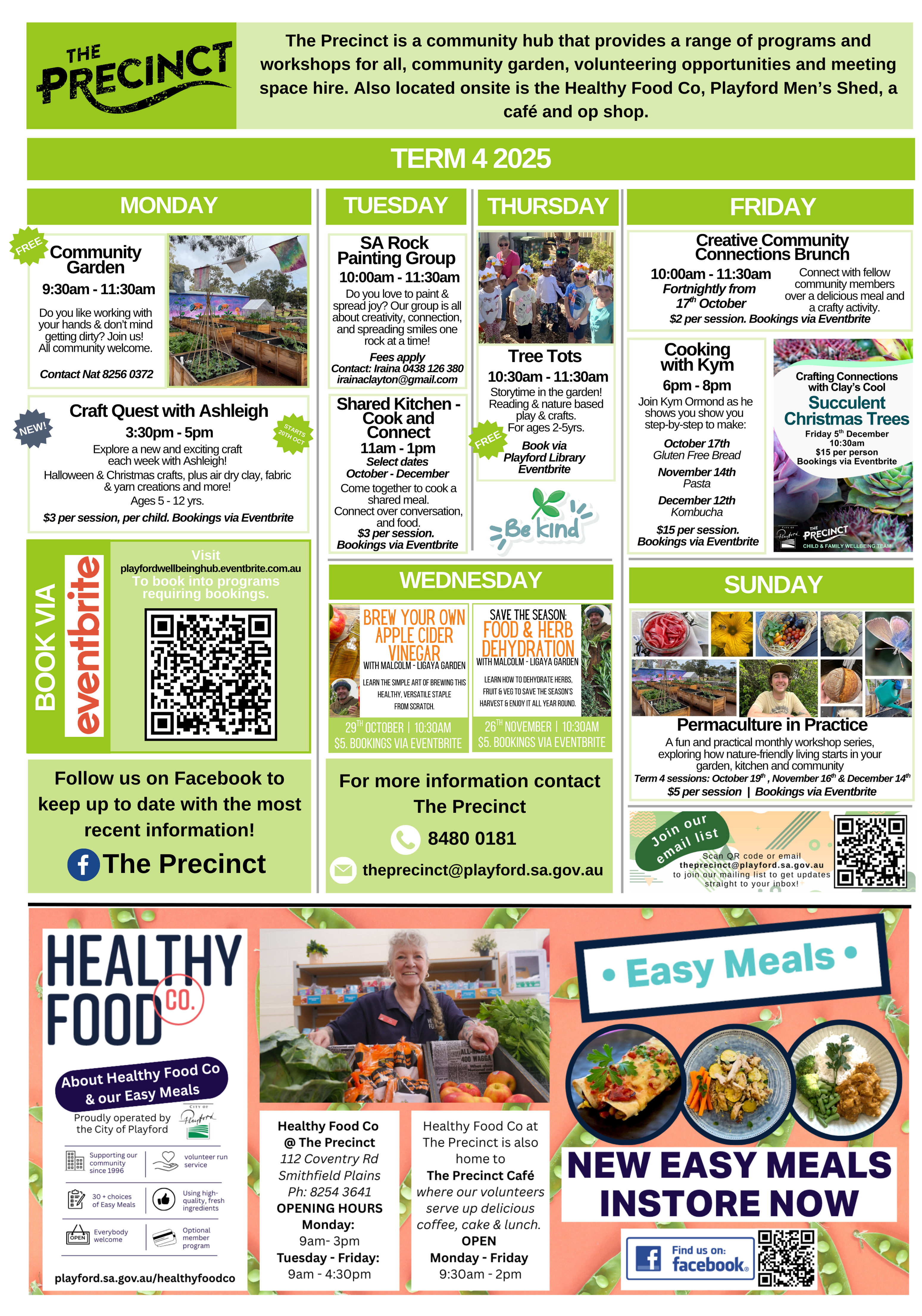 To find out more about the activities and programs on offer at The Precinct, or to book a space for hire, phone 8256 0333 or follow us on Facebook.